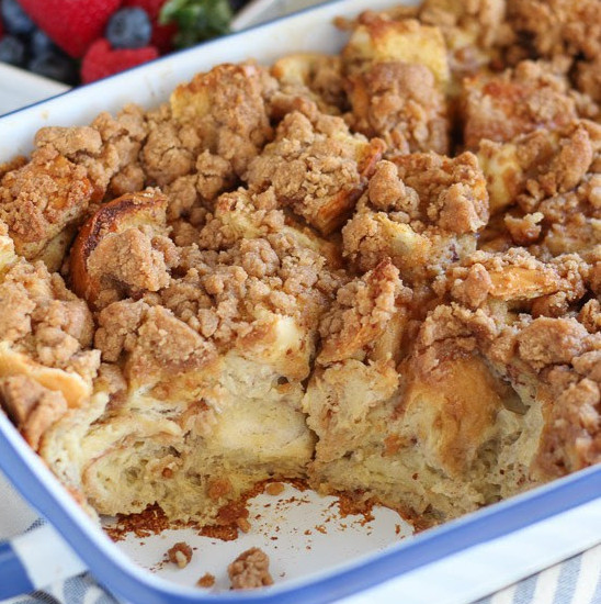 Spiced with cinnamon, vanilla custard and topped with a brown sugar crumb topping. The perfect breakfast casserole! 9 x 13 pan. Serves 6-8