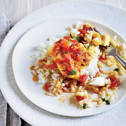 A 6oz seasoned Cod loin baked and topped with a fresh and light Louisiana style tomato chutney served over a bed of seasoned rice.