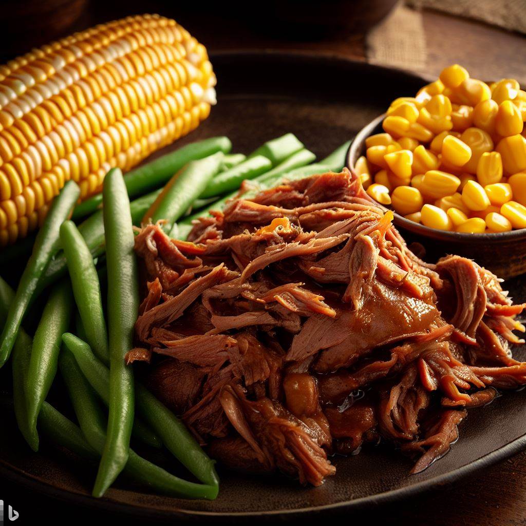 Pulled BBQ beef in a sweet and tangy bbq sauce with fresh green beans and buttered corn off the cob. Perfect for summer vibes!